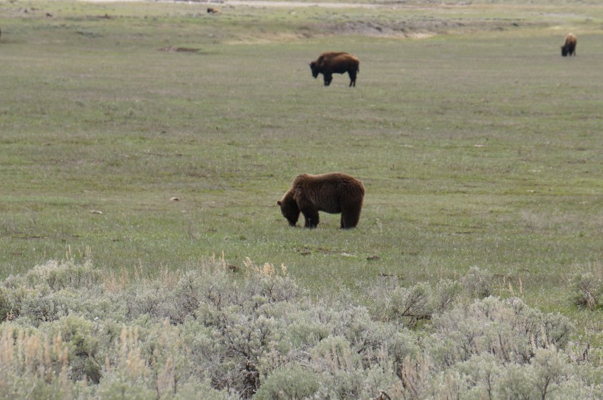 Grizzley and Bison Published June 17, 2014 at 4912 × 3264 in Yellowstone, Learning and Yearning. Grizzley and Bison sharing grazing ground.