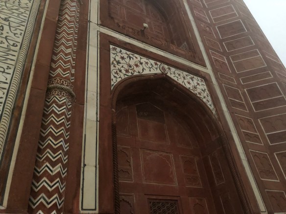 The first night in Agra we went to the gardens to photograph the the back of the hall. The next morning we walked to the main entrance early in the morning. There was a thick fog covering the city. It was not conducive to photography but the mood it created was romantic and memorable. It was if the heavens were embracing the site.