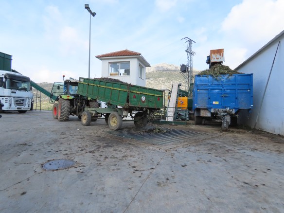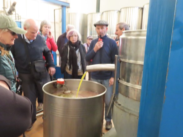 At the olive oil factory we observed the entire process. The olives are hand picked or shaken off the tree with a stick, loaded onto a truck and taken to factory. The olives are crushed and spun to remove the oil which is filtered before bottling. The tanks are cleared on the crushed olives which are moved to a second factory to make virgin olive oil.